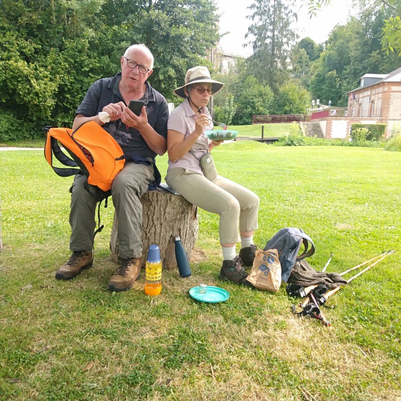 Ensuite, une petite pause reconstituante à proximité de l’expo photo et l’on repart d’un pas décidé vers Neuf-Marché en empruntant cette fois la petite route en lisière de la forêt.