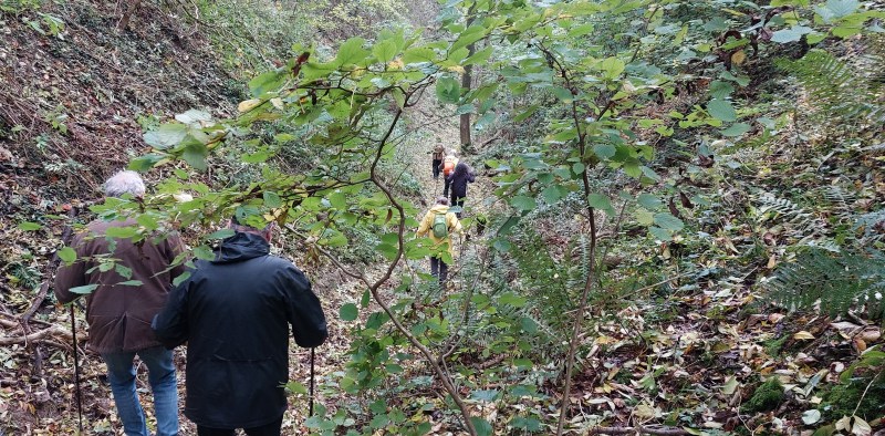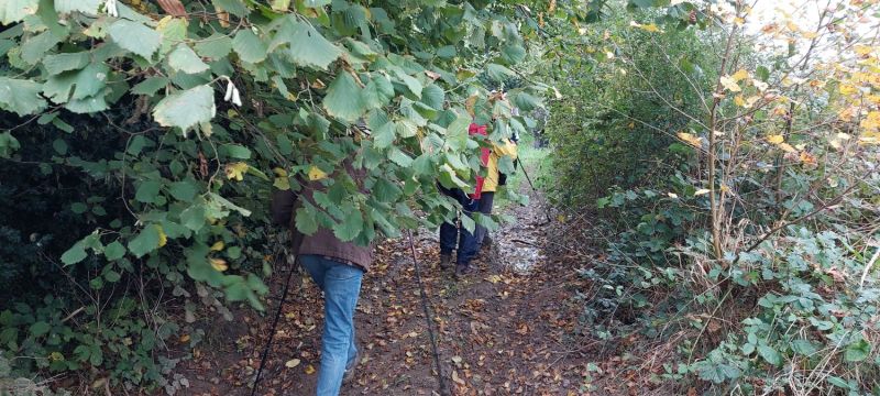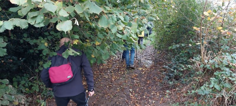 Comme souvent, nous commençons par un petit chemin, « qui sent la noisette… » non, pas cette fois, pour les noisettes nous n’en avons pas trouvées, ce sont plutôt des chênes qui nous entourent.