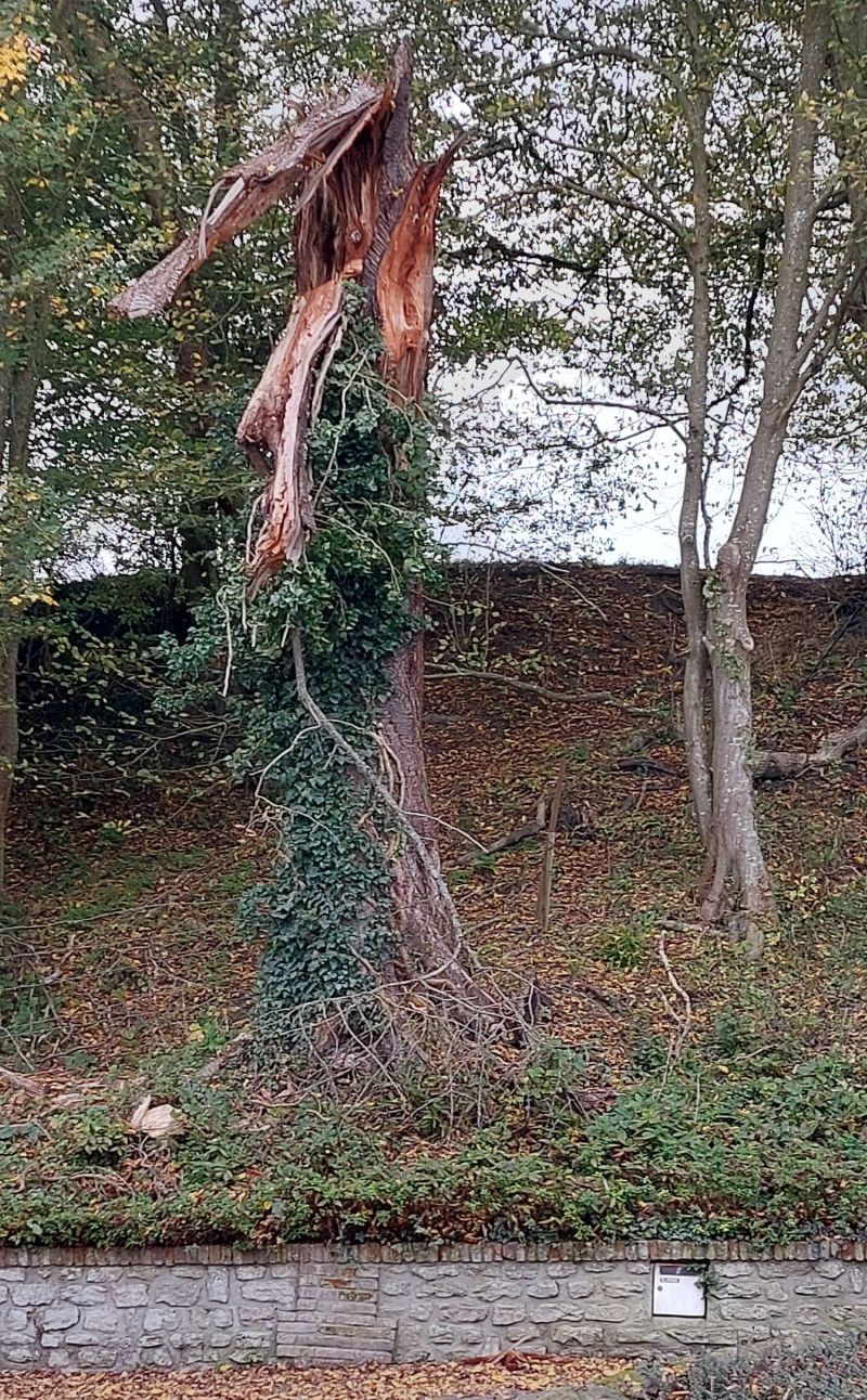 Un tronc éventré, certainement suite à une tempête qui arrachât une grosse branche.