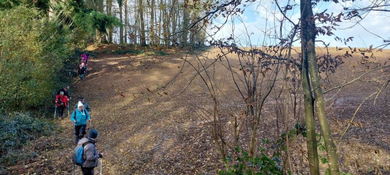 Notre guide, Olivier indique que c’est légèrement à droite le petit chemin à travers le bois. Allons-y !
