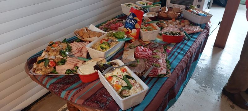 Il est temps de revenir aux plaisirs terrestres, des bonnes choses nous attendent : Apéritifs, buffet de viandes, charcuteries, fromages, desserts (délicieux préparés par nos GM : gentils membres), et le café.