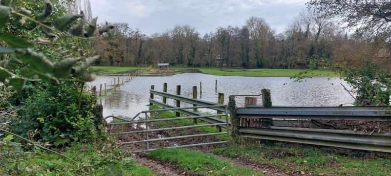 Une petite idée du terrain, avec le dérèglement climatique, la Normandie, n’est pas la région la plus touchée mais elle est bien arrosée et quant l’eau tombe du ciel, elle reste un petit moment sur le sol en voilà la preuve ! Les escargots et les limaces sont heureux mais savent-il nager ?