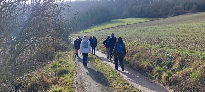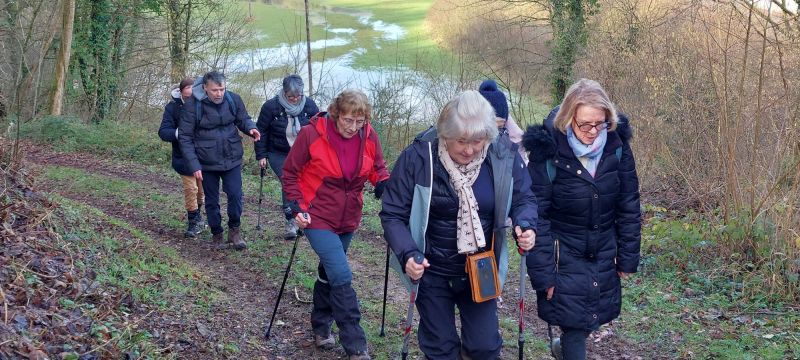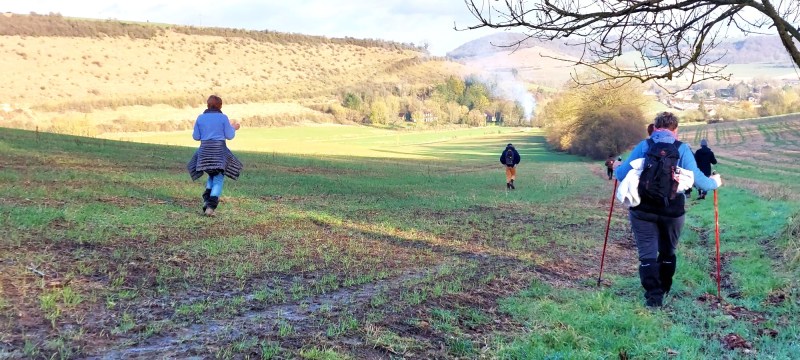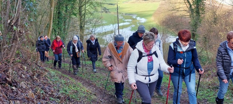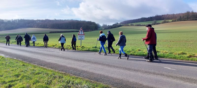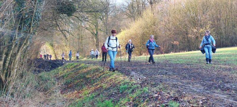 Ce mercredi le soleil est de sortie, nous aussi, partons en rando autour de Neuf-Marché pour 8,5 km avec Olivier. Un record de participants cette fois, 27 ou 28, le décompte officiel est en délibération, en fait les « marcheurs » bougent tout le temps, par définition !!! ce qui explique cette incertitude. Si vous voulez vous amuser en lisant ce CR et scrutant les photos, faite le décompte du nombre de chaussures, mais n’oubliez pas de diviser par 2 ! et vous saurez.