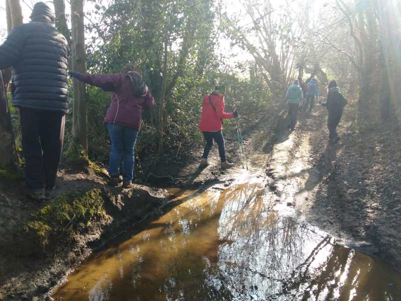 Ah Hodenc et ses bas-fonds ! C’était pas triste le petit chemin en forêt, il fallait drôlement s’accrocher pour contourner les flaques, en fait de flaques, c’était carrément des fosses, on enfonçait pratiquement toute la longueur du bâton avant de toucher le fond ! Personne n’était tenté par la baignade.
