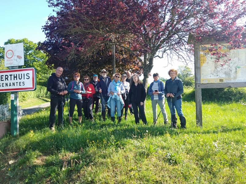 13 au départ de cette rando, si l’on en juge d’après la photo. kilométrage relativement modeste pour une rando du Dimanche : un peu plus de 9, mais l’objectif était de nous laisser un peu de temps disponible pour pouvoir visiter le marché aux plantes dans le parc de la mairie.