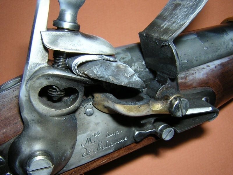 Sur le chien est fixé un morceau de silex (utilisé pour 40 coups environ).