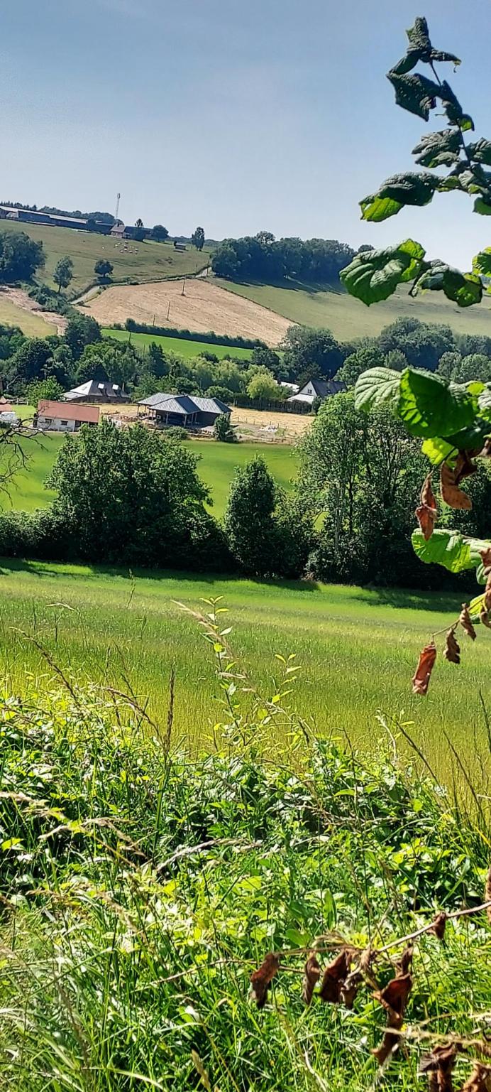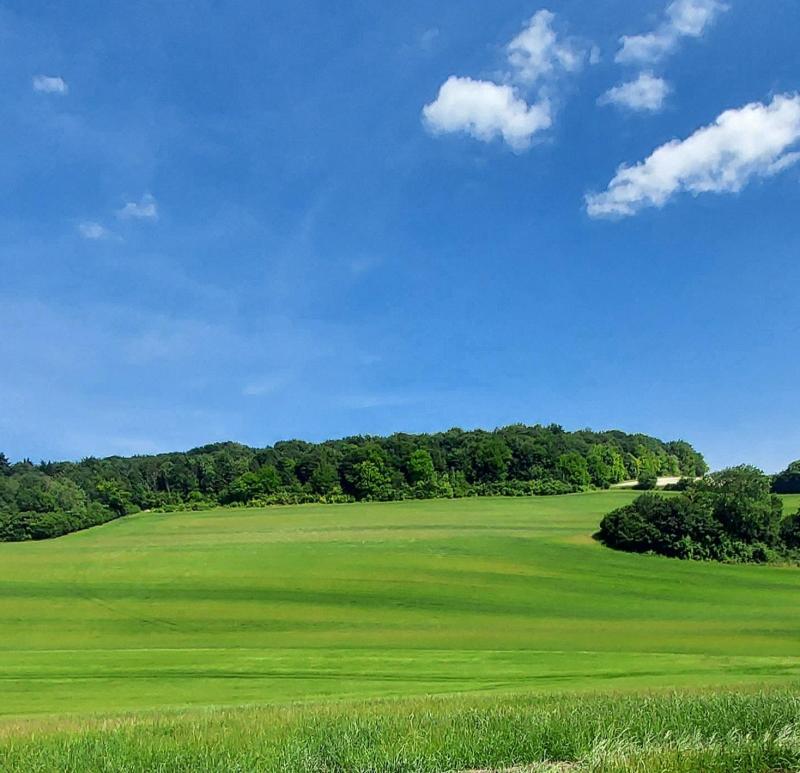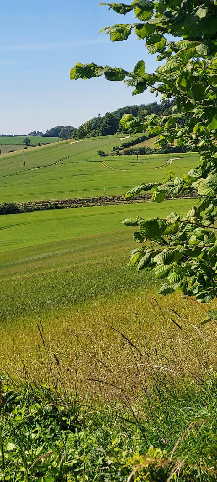 Comme le héron de la fable, après avoir côtoyé la rivière(Le Héron) où l’onde était transparente, nous avons courageusement gravi le bois de la Mare aux Fresne en empruntant le GR du Pays des Forêts et nous retrouver sur le plateau entre herbage et champ de blés. Après avoir admiré le joli paysage de la vallée, nous sommes redescendus vers le village.