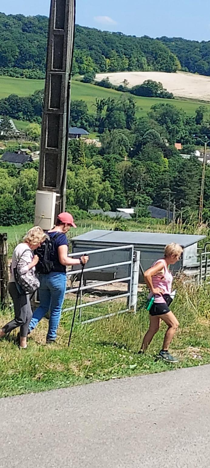 Le chemin nous a conduit ensuite de l’autre côté de la vallée… sur la route de l’enfer… et c’est exact il faisait chaud ! pour remonter vers le Bois de la Housselaye et redescendre vers Le Mesnil où nous avons pris notre traditionnel goûter.