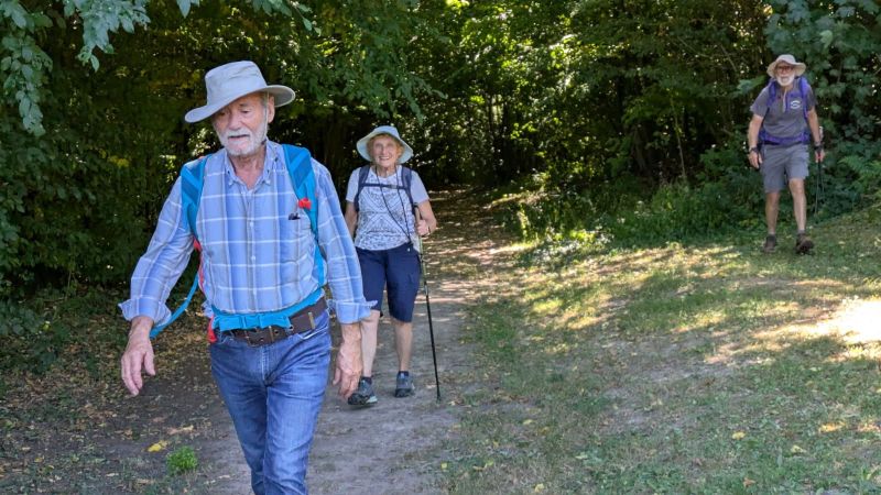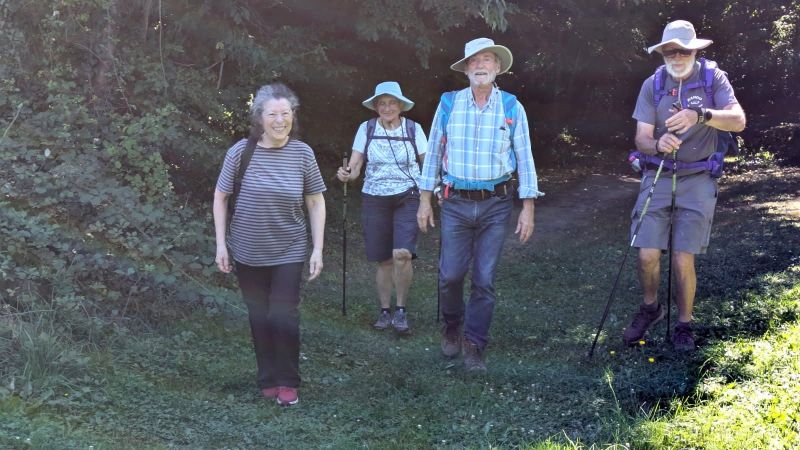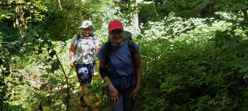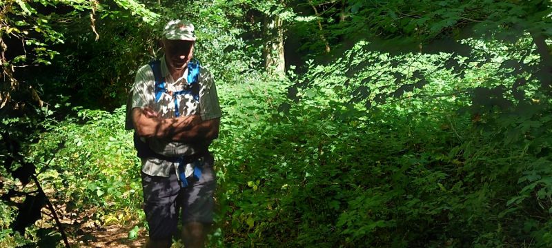 Dany est devant, il plante ses bâtons, casquette vissée sur la tête, le regard au sol, surveillant les racines et les cailloux qui méchamment pourraient l’entraver !