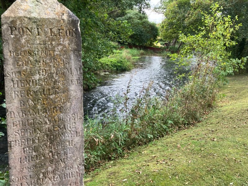 Après la traversée du village, La rando chemine sous bois pour arriver sur le plateau avant de redescendre près de l’Andelle . En chemin nous nous sommes arrêtés près d’une stèle dressée en mémoire d’un jeune homme, père de trois jeunes enfants, tué par les allemands pour faits de résistance pendant la seconde guerre mondiale et dont l’épouse a poursuivi le combat jusqu’à la libération. Petit couple anonyme, bien éloigné de toute notoriété et dont le courage mérite d’être salué !