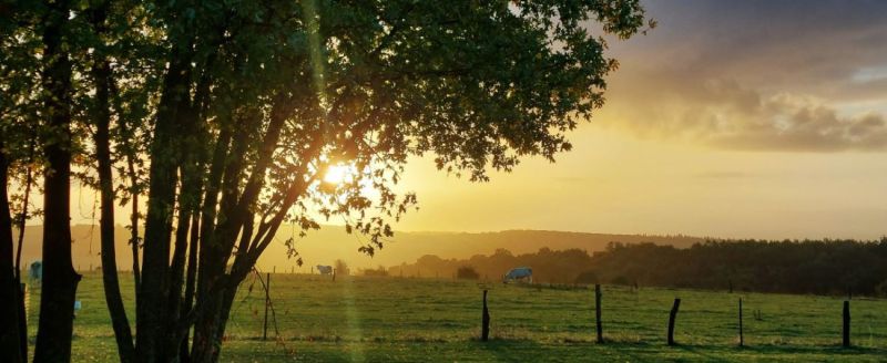Quelques minutes plus tard et le soleil est bien présent cette fois, inondant le pâturage de sa lumière généreuse. Nos amies Normandes sont déjà sur leurs pattes et se régalent de l’herbe gorgée de rosée matinale.