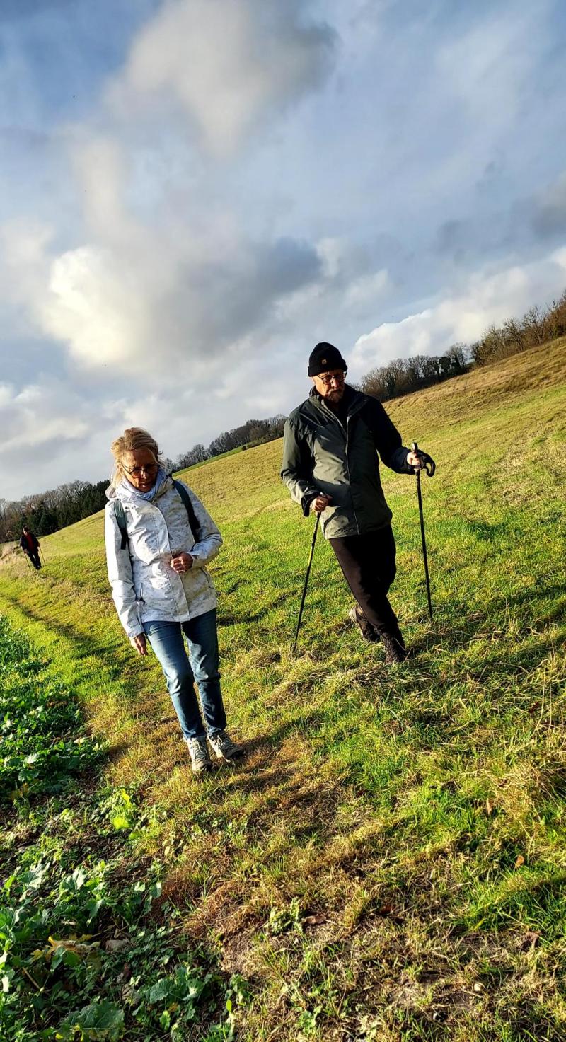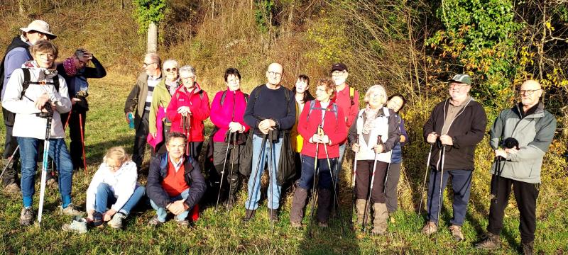 Ce mercredi 10 décembre nous nous sommes retrouvés à 19 randonneurs à Lalande en Son sur la « sente des Landes ». Nous sommes partis par la route jusqu’au lieu-dit « Le Michelet » de là nous sommes descendus jusqu’à Puiseux en Bray. Nous avons emprunté alors un chemin pour accéder à un vallon entre champs et forêt claire. Nous nous sommes dirigés vers le hameau du « Tronquet ». Ensuite nous avons traversé le bois du Mesnil et nous sommes arrivés sur un plateau où on a pu regarder un beau soleil couchant. Enfin nous nous sommes réconfortés autour d’un bon goûter merci pour les excellents gâteaux !!!