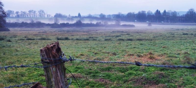 Une autre preuve de la fraîcheur matinale, le bocage dans la brume !