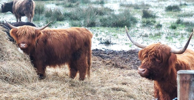 6 – Le nom pour un groupe de vache est normalement «herd» (troupeau) mais pour les Highland c’est «fold» en référence aux abris ouverts dans lesquels elles passent l’hiver !